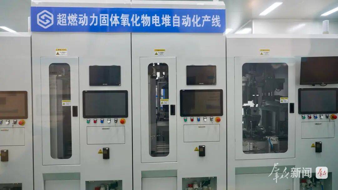 图为超燃动力固体氧化物电堆从动化产线日,记者走进陕西氢能超燃动力科技无限公司的车间,看到的不是稠密的人工流水线套智能化设备构成的一条高效运转的“无人化”产线。