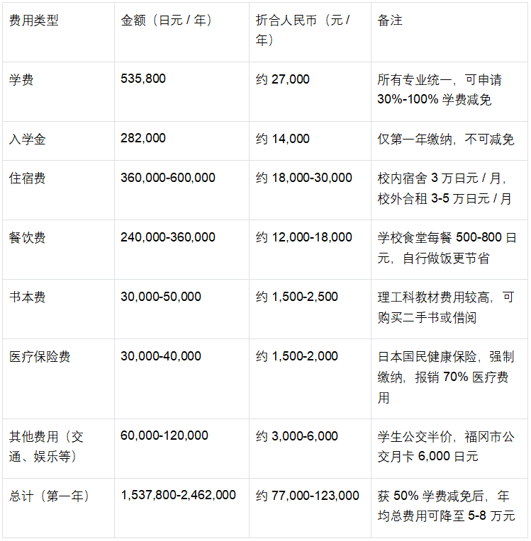 省钱策略:①申请学金:除九州大学国际学生学金外,还可申请“日本(MEXT)学金”(笼盖全额膏火+糊口费),2025年辽宁学子MEXT学金获得率达15%;②校内兼职:学校藏书楼、研究室供给兼职岗亭,时薪1000-1200日元,月增收约1万元人平易近币;③资本共享:插手九州大学中国粹友会,共享二手教材、家具,节流购买成本。