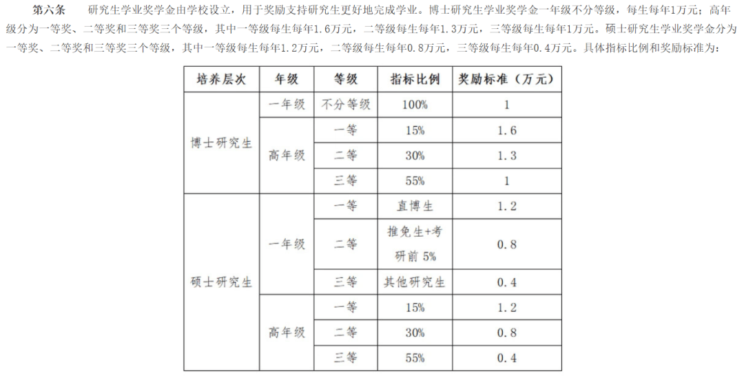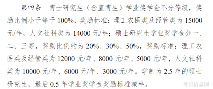 硕士研究生学业学金分一、二、三等,励比例约为20%、30%、50%,励尺度:理工农医类及经管类为12000元/年、8000元/年、5000元/年,人文社科类为10000元/年、6000元/年、3000元/年。