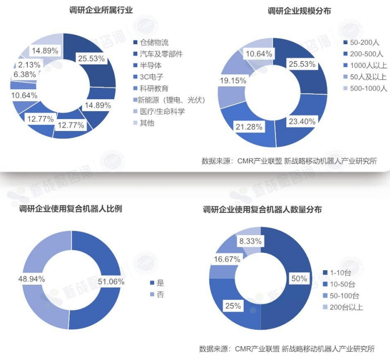响应柔性制制的焦点需求:现代制制业面对小批量、多品种的出产挑和,要产线能快速调整。复合机械人的矫捷性和可沉构性恰是为此而生。它们可以或许替代保守固定工位,实现物料正在工位间的自支流转和精准功课,极大提拔了产线的柔性。“具身智能”成为新赛道:行业正将具身智能视为下一代机械人的演进标的目的。这意味着机械人的智能并非孤立存正在,而是通过取物理的交互不竭进修和进化,最终能像人一样正在复杂非布局化中完成多使命协同功课。总体来看,复合机械人本体的出产制制正朝着更智能、更矫捷、更切近现实工业场景的标的目的快速成长将来的合作将不只仅是硬件机能的比拼,更是对行业工艺学问的深度理解、软硬件一体化的整合能力以及建立生态的分析较劲。具身智能复合机械人的下逛使用行业正正在越来越丰硕,为了更好地领会当前各行业对该类机械人的使用现状及等候,新计谋挪动机械人财产研究所出格针对下逛终端用户做了一次问卷查询拜访,以下为问卷查询拜访成果: